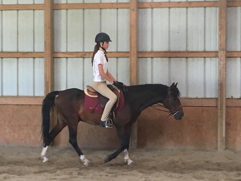 TB Gelding: Currently a lesson horse in a small program. Quint enjoys teaching intermediate to advanced riders. Has show exprience in all three rings, minimal prep from trailer to the ring. This horse is safe, fun, and reliable. 2'6 packer. Gets along well with others, loads, bathes, clips, ties excellent to work with. 25K.